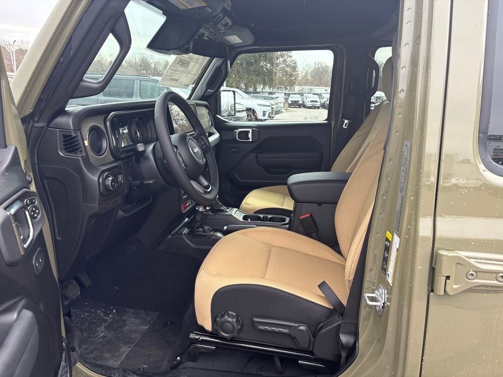 Lia Chrysler Jeep Dodge is honored to offer this superb-looking and fun 2026 Jeep Wrangler Willys in 41 Beautifully equipped with Convenience Group (2-Door Passive Entry, Front Door Locks, Air Conditioning with Auto Temp Control, Air Filtering, Cluster 7.0 TFT Color Display, Emergency/Assistance Call, Heated Front Seats, Heated Steering Wheel, and Universal Garage Door Opener), Quick Order Package 22H Willys 41 (4WD Willys '41 Swing Gate Decal, 7 and 4 Pin Wiring Harness, 97 MPH Vehicle Max Speed Calibration, Adaptive Cruise Control with Stop, Advanced Brake Assist, Automatic Headlamps, Auxiliary Switches, Body Color Grille with Gloss Black Rings, Body Color Rubicon Highline Flare, Class II Receiver Hitch, Cloth Low-Back Bucket Seats, Conventional Differential Front Axle, Corning Gorilla Glass, Dana M210 Wide HD Tube Front Axle, Dana M220 Wide Rear Axle, Daytime Running Lamps LED Accents, Deep Tint Sunscreen Windows, E-Locker Rear Axle, Front LED Fog Lamps, Full Speed Forward Collision Warning Plus, Increased Travel Export Tuned Suspension, LED Premium Reflector Headlamps, MOPAR All-Weather Floor Mats, Off-Road Plus Mode, Power Heated Mirrors, Premium Tan Sunrider Soft Top, Premium Wrapped Steering Wheel, Security Alarm, Steel Front Bumper, Steel Rear Bumper, Sun Visors with Illuminated Vanity Mirrors, Wheels: 17 x 7.5 Fully Painted, Willys '41 Retro Edition Buzz Model, Willys '41 Retro Edition Hood Decal, Willys '41 Retro Edition Tailgate Plaque, Willys '41 Retro Edition Wrangler Decal, Willys '41 Retro Shift Bezel Insert, and Willys '41 US Edition U.S. Hood Decal), Steel Power Dome Hood Package (Power Dome Dual Vented Hood), 12.3 Touchscreen Display, 4-Wheel Disc Brakes, 4G LTE Wi-Fi Hot Spot, 8 Speakers, ABS brakes, Air Conditioning, AM/FM radio: SiriusXM with 360L, Apple CarPlay, Apple CarPlay/Android Auto, Aux Battery, Brake assist, Compass, Connectivity - US/Canada, Delay-off headlights, Driver door bin, Driver vanity mirror, Dual front impact airbags, Dual front side impact airbags, Electronic Stability Control, For More Info, Call 800-643-2112, Front anti-roll bar, Front Bucket Seats, Front Center Armrest w/Storage, Front fog lights, Front reading lights, Google Android Auto, Illuminated entry, Integrated Center Stack Radio, Integrated roll-over protection, Low tire pressure warning, Non-Lock Fuel Cap Without Discriminator, Normal Duty Suspension, Occupant sensing airbag, Outside temperature display, Overhead airbag, Panic alarm, ParkView Rear Back-Up Camera, Passenger door bin, Passenger vanity mirror, Power steering, Power windows, Radio data system, Radio: Uconnect 5 with 12.3 Display, Rear anti-roll bar, Rear reading lights, Remote Keyless Entry, SiriusXM Radio Service, SiriusXM with 360L, Speed control, Split folding rear seat, Steering wheel mounted audio controls, Stop-Start Dual Battery System, Tachometer, Telescoping steering wheel, Tilt steering wheel, Traction control, Trip computer, Variably intermittent wipers, and Wheels: 17 x 7.5 Black Steel Styled!