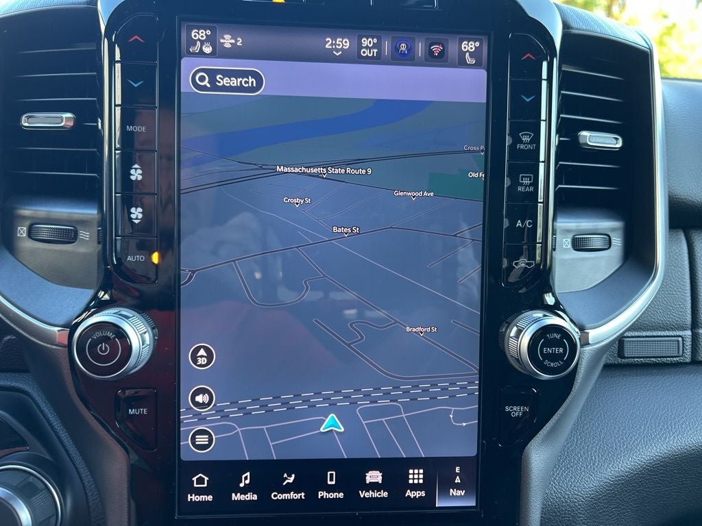 This Ram 1500 also comes equipped with a wealth of advanced safety and convenience technologies, including Blind Spot Monitoring, Rear Cross-Traffic Alert, and Adaptive Cruise Control, ensuring a confident and connected driving experience.