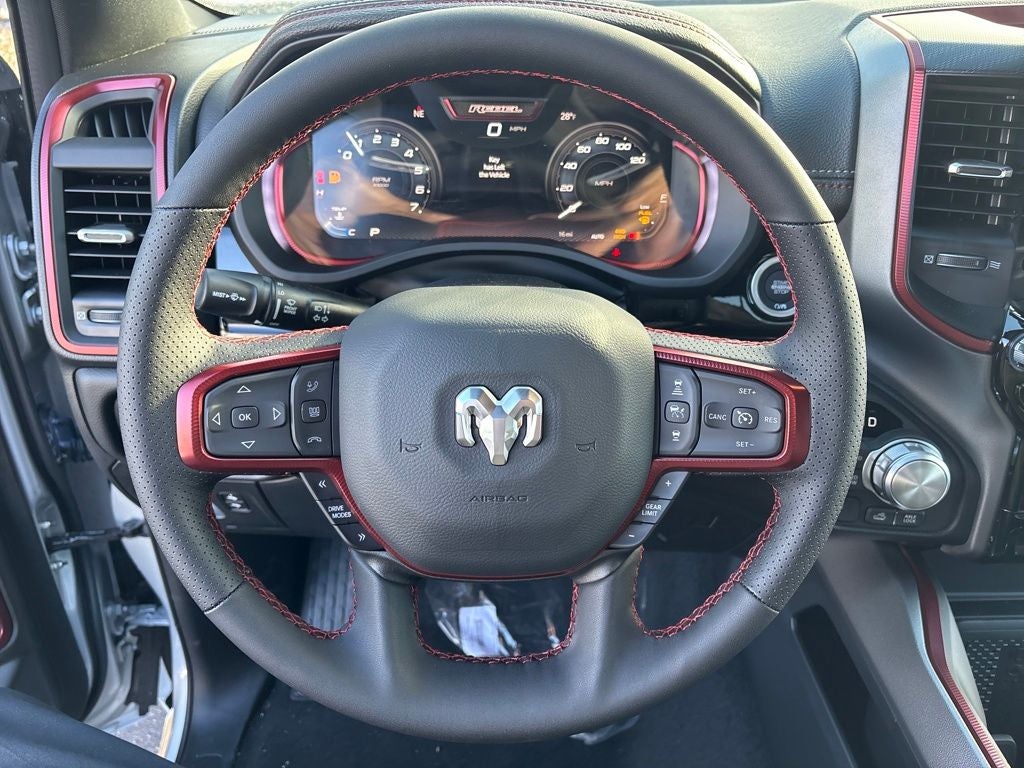 Lia Chrysler Jeep Dodge is honored to offer this gorgeous-looking 2026 Ram 1500 Rebel in Silver Zynith Beautifully equipped with Quick Order Package 21W Rebel, Rebel Level 2 Equipment Group (115V Auxiliary Rear Power Outlet, 14.4 Touchscreen Display, 2-Door Passive Entry, Front Door Locks, 4G LTE Wi-Fi Hot Spot, Accent Color Door Handles, Accent Color Premium Power Mirrors, Accent Color Tailgate Handle, Apple CarPlay, Auto Power-Folding Mirrors, Auto-Dimming Exterior Driver Mirror, Black Painted Exterior Mirrors Caps, Connected Travel and Traffic Services, Connectivity - US/Canada, Convex Wide-Angle Exterior Mirror Insert, Disassociated Touchscreen Display, Driver Seat Memory, Dual Wireless Charging Pad, Exterior Mirrors Approach Lamps, Exterior Mirrors Courtesy Lamps, Exterior Mirrors with Heating Element, Exterior Mirrors with Memory, Exterior Mirrors with Supplemental Signals, Front Passenger Interactive Display, Global Telematics Box Module, Google Android Auto, GPS Antenna Input, GPS Navigation, Harman/Kardon 19 Speaker Premium Sound, HD Radio, Heated Second Row Seats, Integrated Center Stack Radio, Integrated Voice Command with Bluetooth®, Media Hub with 2 Charge Only USBs, Off-Road Information Pages, Power 2-Way Passenger Lumbar Adjust, Power Adjust 8-Way Front Passenger Seat, Power Adjustable Pedals with Memory, Power Tailgate, Proximity Approach/Departure Lamps, Radio: Uconnect 5 Nav with 14.4 Display, Radio/Driver Seat/Mirrors/Pedals Memory, Rain Sensitive Windshield Wipers, Rear Window Defroster, Security Alarm, SiriusXM Radio Service, SiriusXM with 360L, Smartphone as a Key Capable, and USB Host Flip), 10 Speakers, 3.92 Rear Axle Ratio, 4 Way Front Headrests, 4-Wheel Disc Brakes, ABS brakes, Active Noise Control System, Air Conditioning, Alloy wheels, AM/FM radio: SiriusXM with 360L, Apple CarPlay/Android Auto, Auto High-beam Headlights, Auto-dimming Rear-View mirror, Automatic temperature control, Black Exterior Mirrors, Brake assist, Bucket Seats, Cloth/Vinyl Bucket Seats, Compass, Delay-off headlights, Driver door bin, Driver vanity mirror, Dual front impact airbags, Dual front side impact airbags, Electronic Stability Control, Front anti-roll bar, Front Bucket Seats, Front Center Armrest w/Storage, Front dual zone A/C, Front fog lights, Front License Plate Bracket, Front reading lights, Front Seat Back Map Pockets, Front wheel independent suspension, Full Length Upgraded Floor Console, Fully automatic headlights, Garage door transmitter, Heated door mirrors, Heated Front Seats, Heated front seats, Heated Steering Wheel, Heated steering wheel, Illuminated entry, Leather steering wheel, Low tire pressure warning, Manual Folding Exterior Mirrors, Manufacturer's Statement of Origin, Navigation System, Occupant sensing airbag, Outside temperature display, Overhead airbag, Overhead console, Panic alarm, ParkView Rear Back-Up Camera, Passenger door bin, Passenger vanity mirror, Power 2-Way Driver Lumbar Adjust, Power Adjust 8-Way Driver Seat, Power door mirrors, Power driver seat, Power steering, Power windows, Radio data system, Radio: Uconnect 5 Navigation with 12.0 Display, Rear 60/40 Folding Seat, Rear anti-roll bar, Rear seat center armrest, Rear step bumper, Remote Keyless Entry, Speed control, Split folding rear seat, Steering wheel mounted audio controls, Tachometer, Telescoping steering wheel, Tilt steering wheel, Traction control, Trip computer, Variably intermittent wipers, Voltmeter, and Wheels: 18 x 8.0 Painted Mid-Gloss Black!