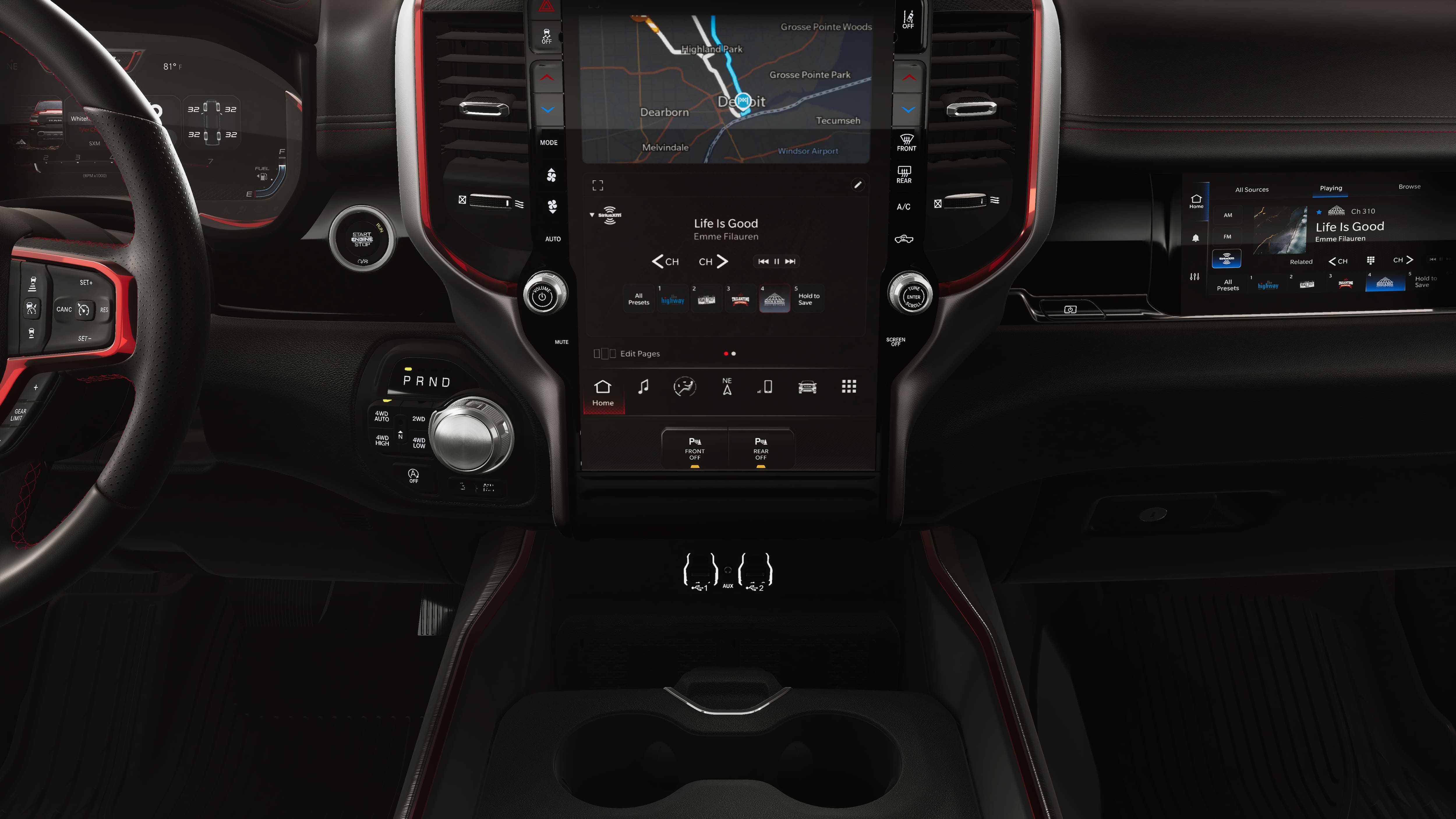 - 4-Wheel Disc Brakes w/4-Wheel ABS, Front Vented Discs, Brake Assist, Hill Descent Control, Hill Hold Control and Electric Parking Brake