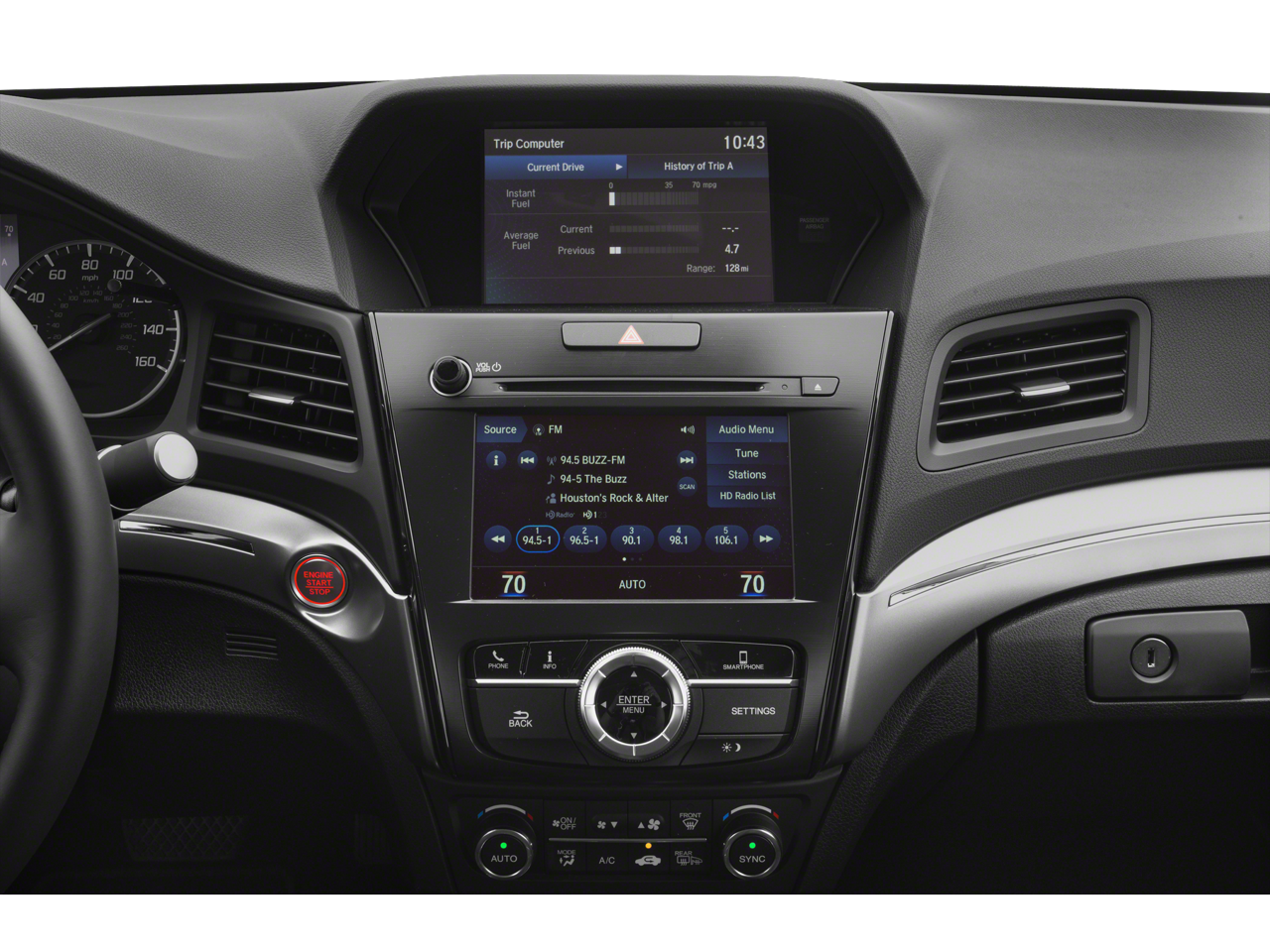 - Radio: Acura Premium Audio System -inc: 7 speakers including subwoofer, Speed-Sensitive Volume Compensation (SVC), USB audio interface w/iPod integration, Bluetooth® streaming audio, SiriusXM radio, HD Radio, Pandora compatibility, Aha compatibility, iPhone AcuraLink navigation app connectivity, Bluetooth® HandsFreeLink wireless telephone interface, color multi-information display, On Demand Multi-Use Display (ODMD), Siri eyes free, Apple CarPlay integration, Android Auto integration and SMS/MMS text message and email capability