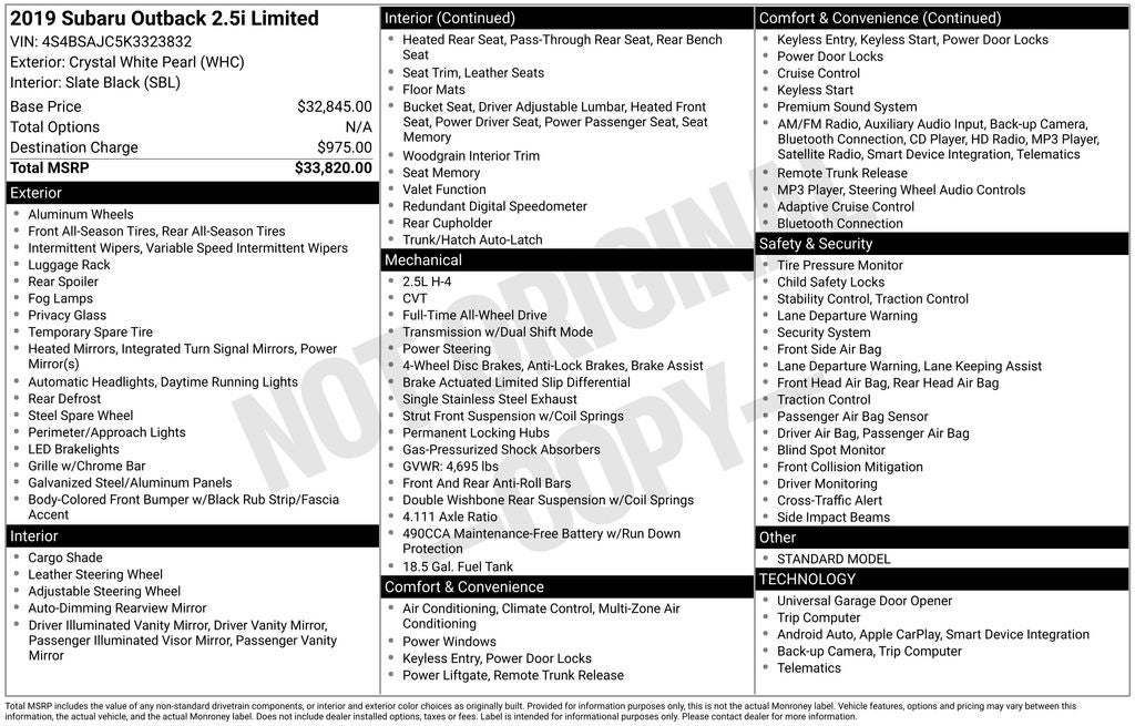 - Vehicle Name: Subaru Outback