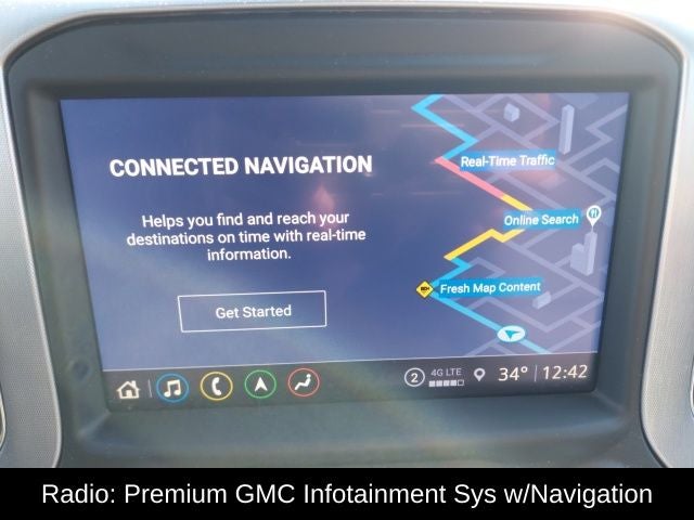 - Audio system, Premium GMC Infotainment System with 8" diagonal color touch-screen, includes multi-touch display, AM/FM stereo Bluetooth® streaming audio for music and most phones; featuring wireless Android Auto and Apple CarPlay capability for compatible phones, advanced voice recognition, in-vehicle apps, personalized profiles for infotainment and vehicle settings (Note: (PZ8) Hitch Guidance with hitch view is included with trim. Includes SiriusXM with 360L.)