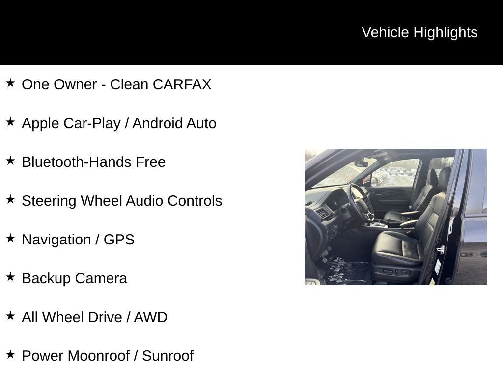 One Owner - Clean CARFAX, Apple Car-Play / Android Auto, Bluetooth-Hands Free, Steering Wheel Audio Controls, Navigation / GPS, Backup Camera, All Wheel Drive / AWD, Power Moonroof / Sunroof, Heated-Leather Seats, Push Button Start, Dual Zone Auto-Climate Control, Premium Alloy Wheels, Front & Rear Parking Sensors, Lane Departure Warning, Full Power Options: Locks & Windows, Cruise Control, Power Liftgate. Odometer is 10386 miles below market average!