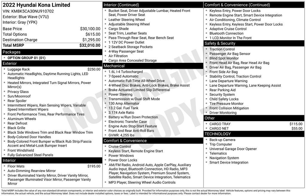 - Vehicle Name: Hyundai Kona