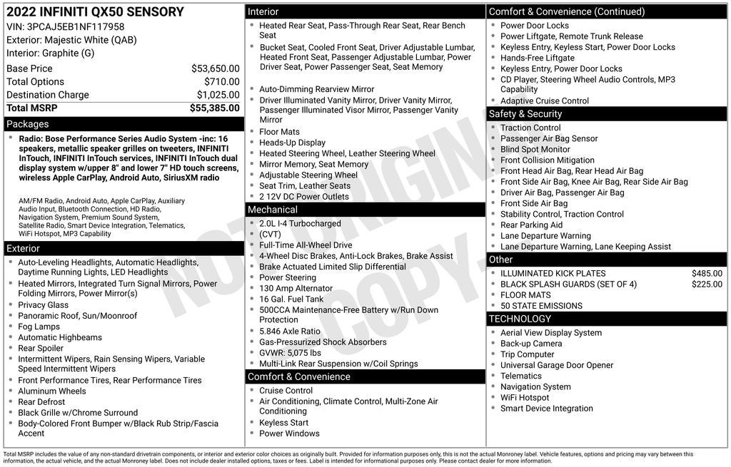 - Vehicle Name: INFINITI QX50