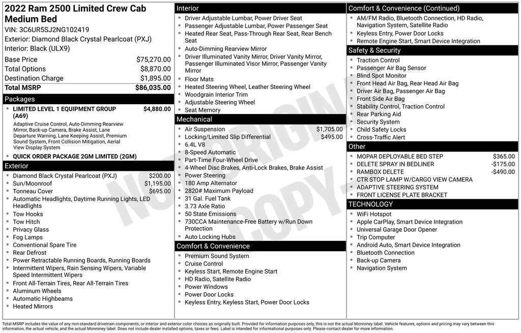 Whether you're tackling tough jobs or embarking on grand adventures, this 2022 Ram 2500 Limited is the ultimate expression of power, capability, and refinement. Experience the difference for yourself and schedule a test drive today. We're confident that once you get behind the wheel, you'll be convinced that this is the truck you've been searching for.