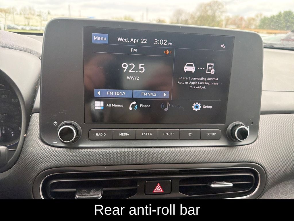 Kona SEL, 4D Sport Utility, 2.0L I4 DOHC Dual CVVT, AWD, Silver / Black, Gray Cloth, ABS brakes, Air Conditioning, Alloy wheels, Apple CarPlay & Android Auto, Brake assist, Cargo Blocks, Cargo Net, Cargo Package, Cargo Tray, Delay-off headlights, Dual front impact airbags, Dual front side impact airbags, Electronic Stability Control, Emergency communication system: Blue Link Connected Car Service (3-year complimentary subscription), Exterior Parking Camera Rear, Four wheel independent suspension, Front anti-roll bar, Front Bucket Seats, Front Center Armrest, Fully automatic headlights, Low tire pressure warning, Occupant sensing airbag, Option Group 01, Overhead airbag, Power driver seat, Power steering, Power windows, Rear anti-roll bar, Rear window defroster, Remote keyless entry, Speed-sensing steering, Split folding rear seat, Steering wheel mounted audio controls.
