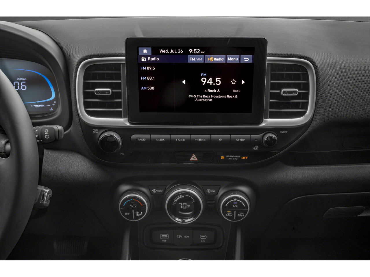 Venue SEL, 4D Sport Utility, CVT, FWD, Intense Blue, Gray Cloth, 4-Wheel Disc Brakes, ABS brakes, Alloy wheels, Apple CarPlay & Android Auto, Brake assist, Carpeted Floor Mats, Cloth Seat Trim, Driver door bin, Driver vanity mirror, Dual front impact airbags, Dual front side impact airbags, Electronic Stability Control, Front anti-roll bar, Front Bucket Seats, Front Center Armrest, Front reading lights, Front wheel independent suspension, Illuminated entry, Leather Shift Knob, Leather steering wheel, Low tire pressure warning, Occupant sensing airbag, Option Group 01, Outside temperature display, Overhead airbag, Overhead console, Passenger vanity mirror, Power moonroof, Power steering, Power windows, Rear Seat Cup Holder, Remote keyless entry, Speed-sensing steering, Split folding rear seat, Steering wheel mounted audio controls, Tachometer.