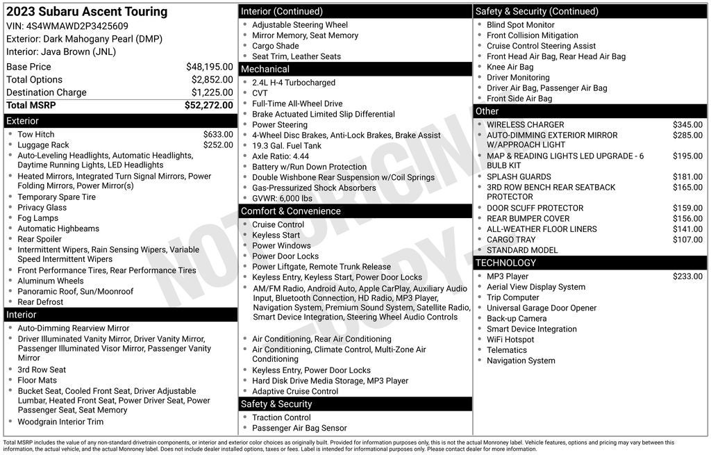 - Vehicle Name: Subaru Ascent