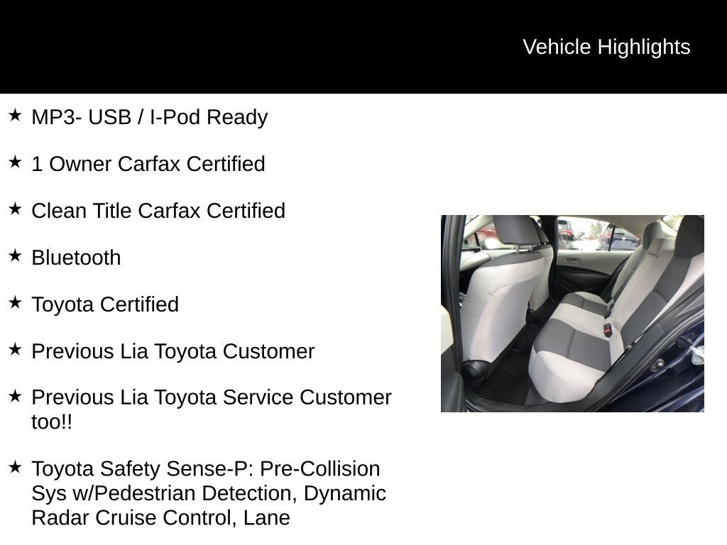 Isn't it time to treat yourself to this Toyota Corolla LE finished in Blueprint and certified to provide you with many years of worry free driving? Recent Arrival! 32/41 City/Highway MPG
