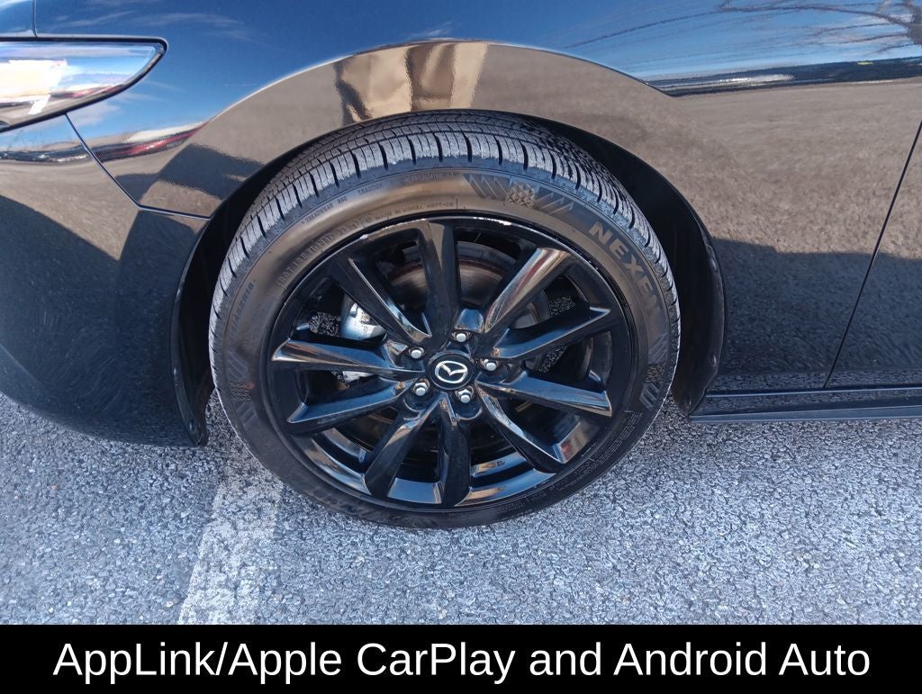 Step inside the Mazda3 and you'll be greeted by a well-appointed interior, featuring a MAZDA CONNECT Infotainment System, dual-zone automatic climate control, and a leather-wrapped steering wheel. The spacious cabin and split-folding rear seats provide ample room for passengers and cargo, making this Mazda3 a versatile companion.