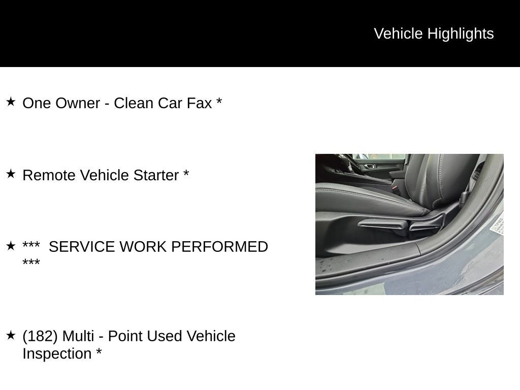 This 2024 Honda Civic Sport has been meticulously inspected and certified, giving you the peace of mind of a thoroughly vetted pre-owned vehicle. With low mileage and a clean CARFAX history, it's the perfect choice for the savvy buyer seeking a reliable, feature-packed, and stylish compact car.