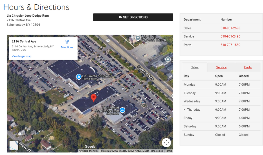 At Lia Chrysler Jeep Dodge RAM, our primary goal is to assist you in a courteous and professional manner to ensure your car buying experience is a memorable & enjoyable one. With over 34 years of selling and servicing new and used cars to Albany, NY as well as residents from the Schenectady, Latham, Troy, Colonie and Saratoga Springs areas, the Lia Auto Group's staff strives to achieve excellence in customer service and satisfaction.
