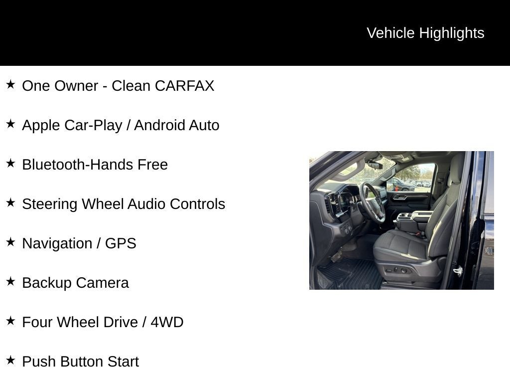 One Owner - Clean CARFAX, Apple Car-Play / Android Auto, Bluetooth-Hands Free, Steering Wheel Audio Controls, Navigation / GPS, Backup Camera, Four Wheel Drive / 4WD, Push Button Start, Remote Vehicle Starter, Remote Keyless Entry, Dual Zone Auto-Climate Control, Premium Alloy Wheels, Fog Lights, Front & Rear Parking Sensors, Lane Departure Warning, Rear Cross-Traffic Alert, Bedliner, Full Power Options: Locks & Windows, Cruise Control, Trailering Package, 10-Speed Automatic, 4WD, Black Cloth.